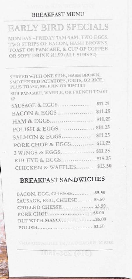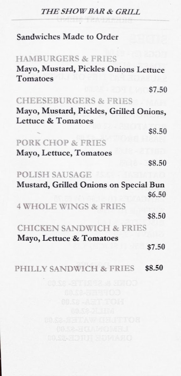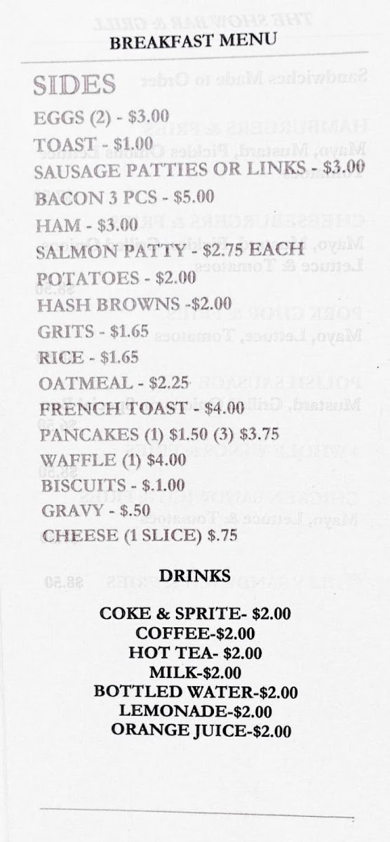 If you're looking for a dining experience that combines great food with a relaxed atmosphere, the Show Bar & Grill Menu is where you need to be. Located at 3523 N Broadway in St. Louis, MO, this spot is a local favorite for those who crave hearty, flavorful meals paired with a laid-back vibe. Whether you're here for a casual bite or a night out, the menu offers something for everyone. From savory burgers and mouthwatering steaks to light bites and fresh salads, there’s no shortage of delicious options to choose from. And, of course, don't miss out on their signature drinks - perfect for enjoying with friends or unwinding after a long day. Every dish is crafted with care, making sure each visit is something to look forward to.